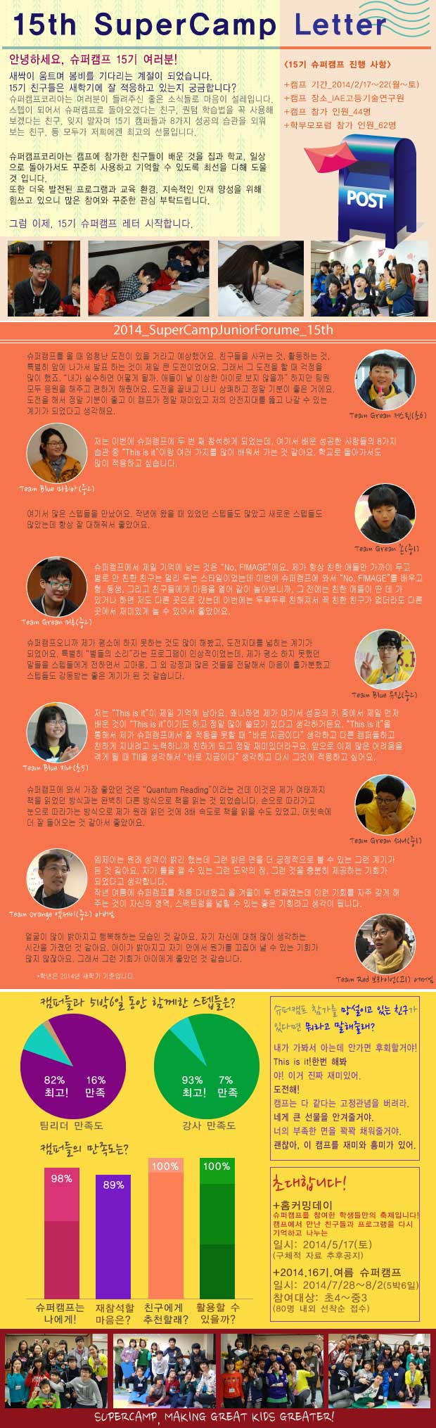 2014년 15기 슈퍼캠프 성원에 감사합니다! 페이지 정보 작성자 (주)퀀텀러닝코리아 작성일2014-02-26 조회565회 목록 본문 2014년 15기 슈퍼캠프에 보내주신 관심과 성원에 진심으로 감사드립니다 목록